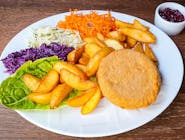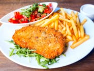 panierowane polędwiczki drobiowe/ frytki/ surówka z marchewki -